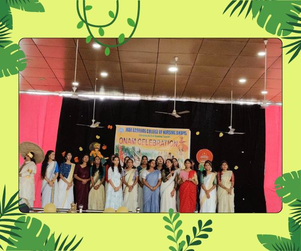 Onam is a traditional harvest festival celebrated in Kerala, marking the homecoming of the legendary King Mahabali. It is a time of joy, unity, and cultural richness, celebrated with floral designs (Pookalam). Traditional dances (Thiruvathira), music, games, and Onam Sadhya. Mar Baselios College of Nursing celebrated Onam 2025 on 05th September with joy and cultural spirit.