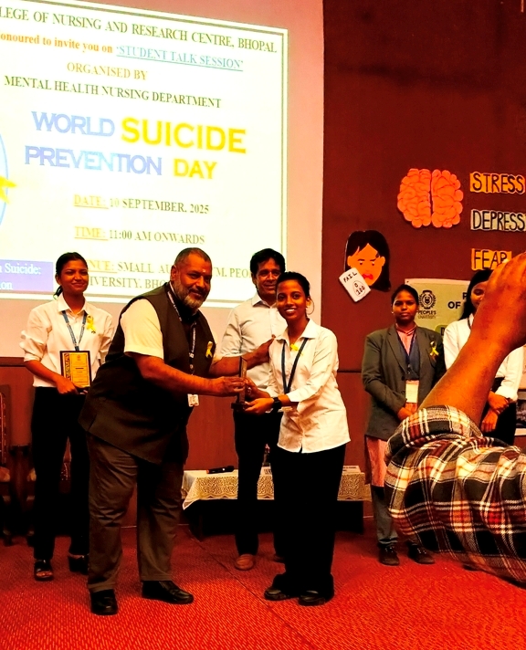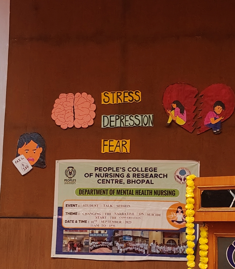 On the occasion of World Suicide Prevention Day, observed on 10th September 2025, a Student Talk Session was organized by the Department of Mental Health Nursing, People's University, Bhopal (M.P.), based on the theme: "Changing the Narrative on Suicide - Start the Conversation."