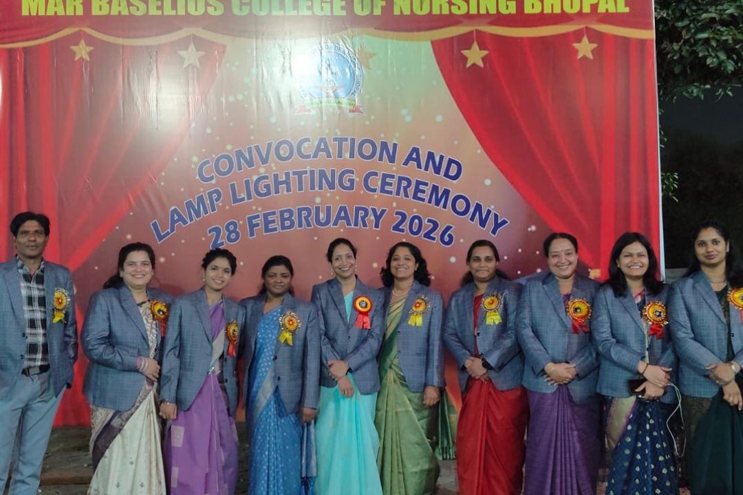 The Convocation and Lamp Lighting Ceremony 2026 was successfully held on 28th February 2026 at 5:30 PM. The ceremony was graced by Dr. R.N Sahu (Director, Bhopal Neuro Psychiatric Clinic & Diagnostic Centre) as the Chief Guest, Rev. Fr. Visakh Scariah (Vicar, Malankara Catholic Church, Bhopal ) as the Guest of Honor, and was presided over by Rev. Dr. Reni Mudampally (Director, Mar Baselios College of Nursing ). Graduates of M.Sc Nursing (2020–2022), B.Sc Nursing (2018–2022), and B.Sc Nursing (2019–2023) batches were awarded their degrees and participated in the solemn lamp lighting ceremony of B.Sc Nursing 2022 & 2025 batch, marking an important milestone in their professional journey. The occasion was filled with pride and joy as Students, Parents, Local Guardians, college council and Pastoral council members, esteemed heads of various nursing institutions and affiliated hospitals gathered to celebrate the achievements of the graduates. The institution extends its heartfelt congratulations to all the graduates and welcome the novice nurses as they step forward into the noble profession of nursing.